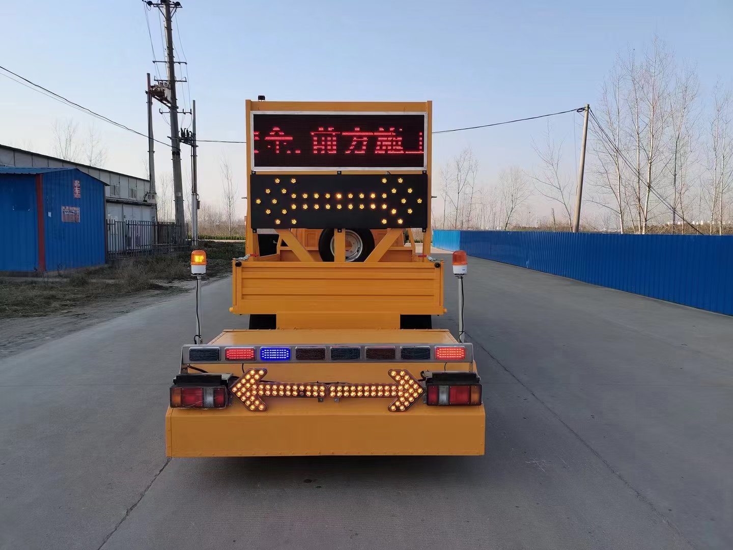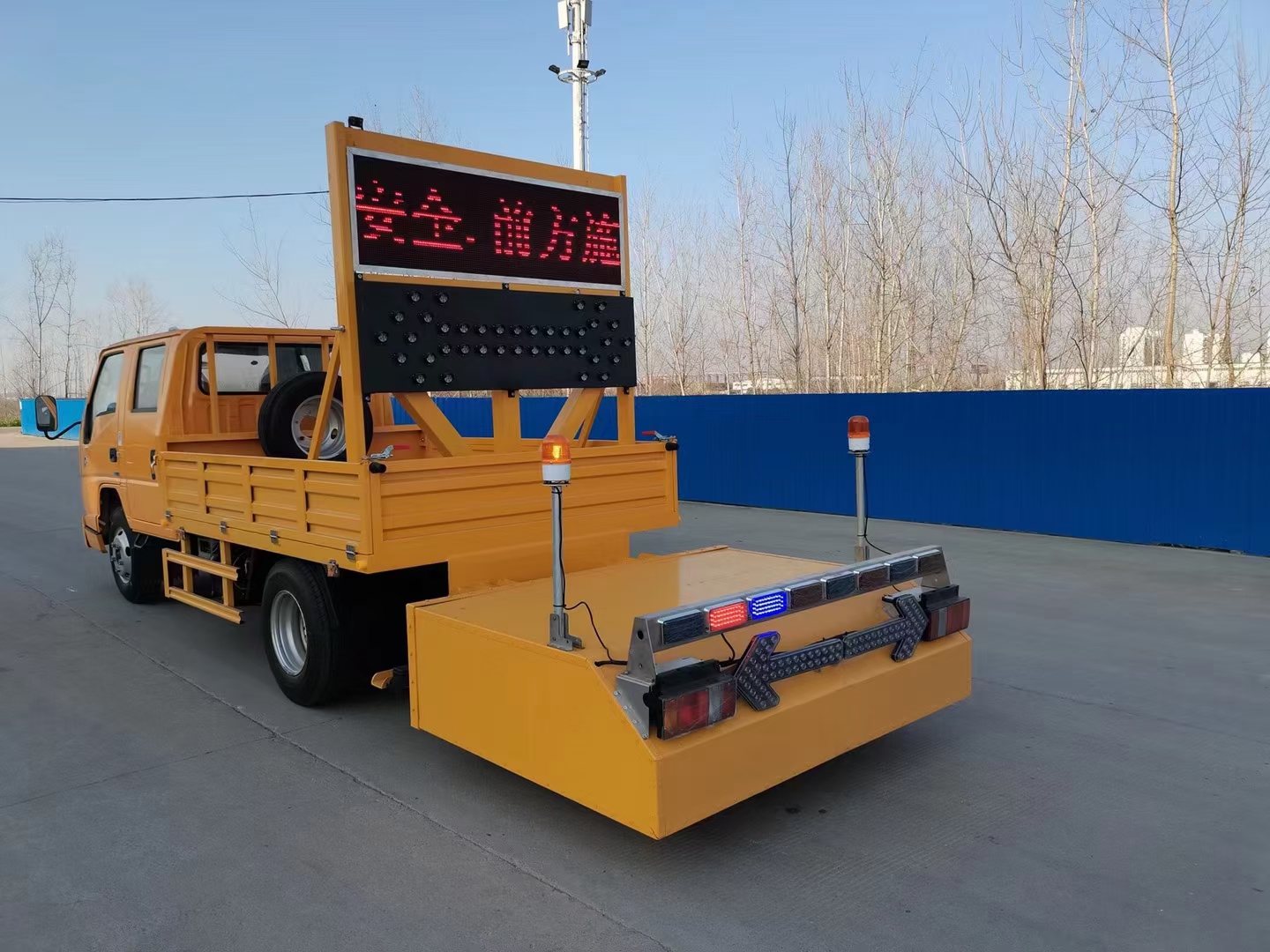 該車還配備車載一體化的電子屏:1600/480mm。電子箭頭標志牌、頻閃燈及爆閃燈多種**示燈,能夠為后方車輛提供**示和指示方向。箭頭指示標志可對左、右及禁止通行進行導向指示對道路車輛提供主動安全引導和安全**示,**限度降低施工對**流量的影響井確保安全。尾部升降和燈具采用遙控**,可在車輛附安全**防撞緩沖塊的升降和**示燈的開關(guān)。